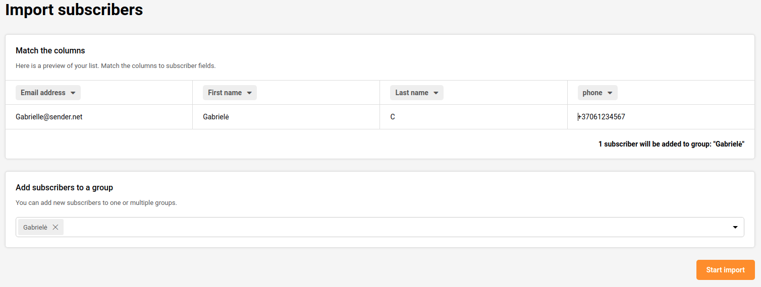 After the columns are marked and selected click on start import button and subscribers will be imported.