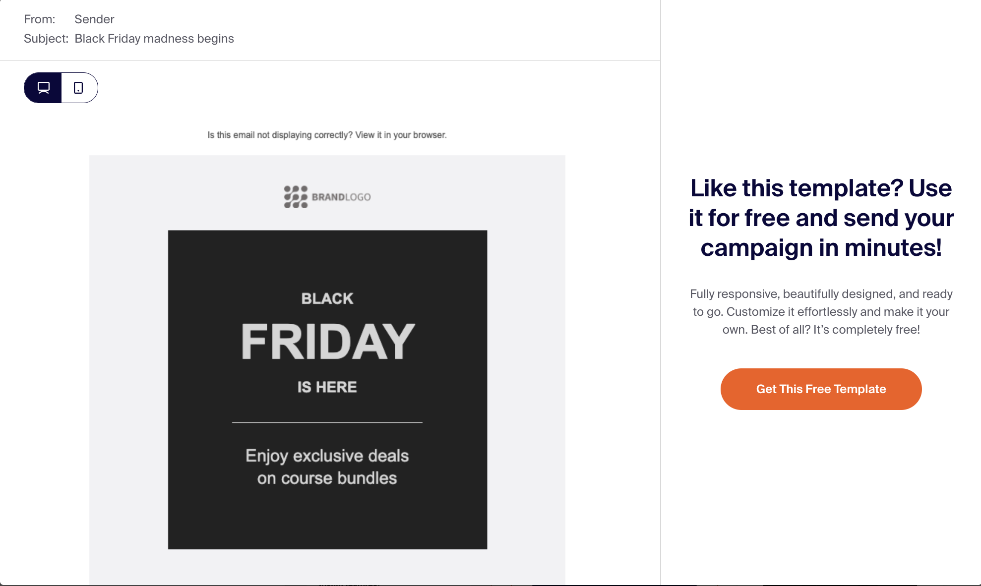 Pre-made Black Friday templates are optimized for mobile, eye-catching, and built with best practices baked in—think bold headlines, clear CTAs, and space for your hero image. With a template, you can launch faster, look polished, and maximize engagement from day one of your campaign.