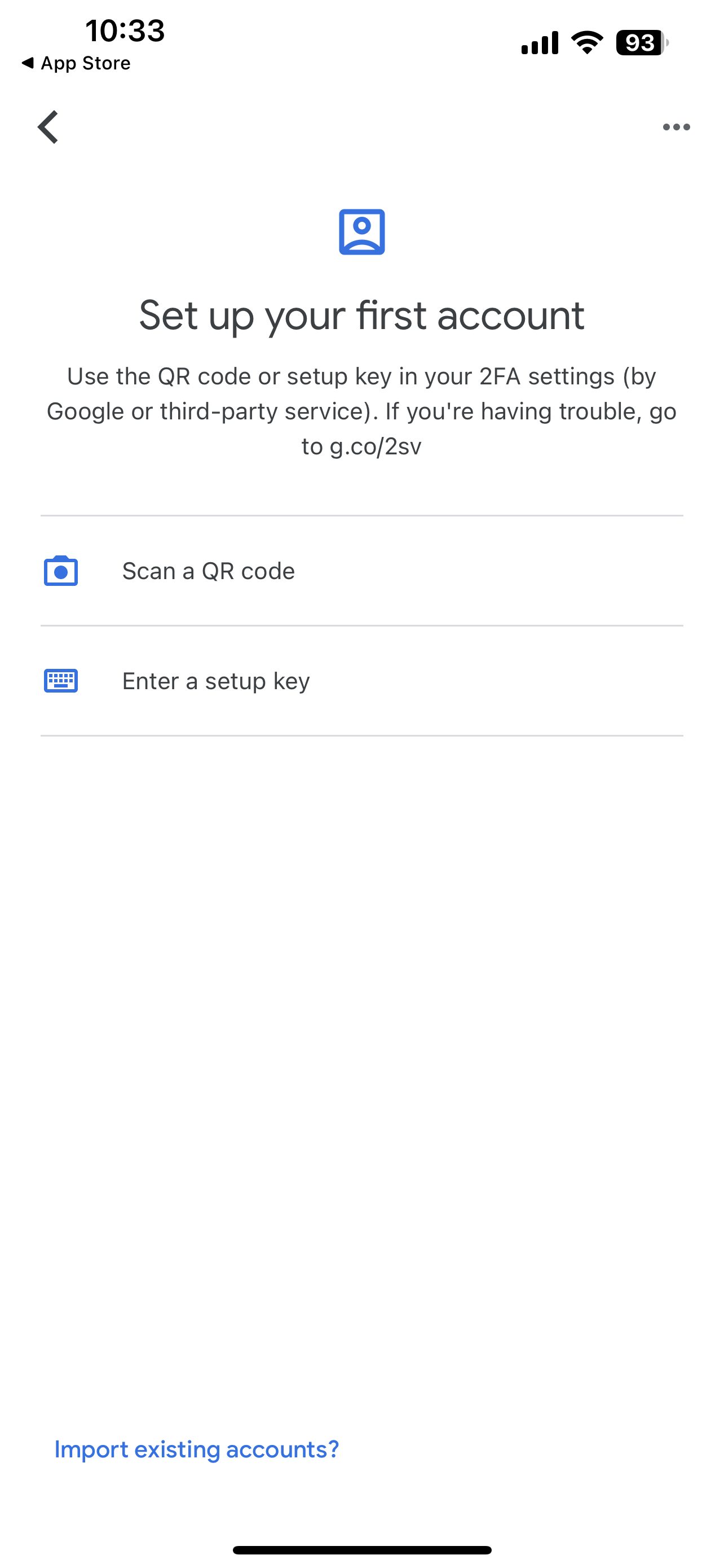 - Open the app, click “Add a code”, choose “Scan a QR code” and then scan the QR code provided.