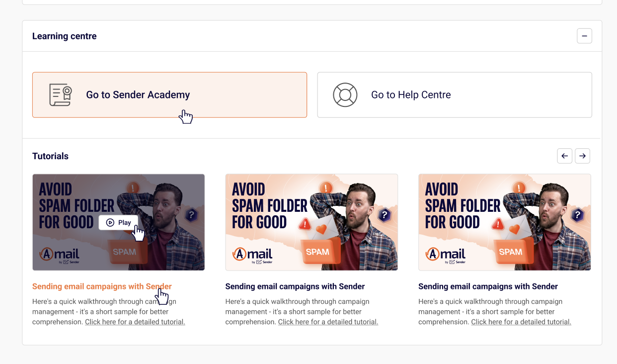 - Go to Sender Academy – Access comprehensive courses, training materials, and in-depth guides