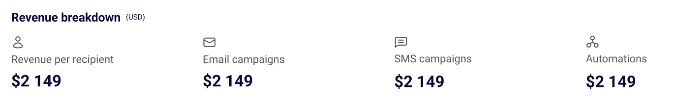 - Total revenue from Sender – Revenue generated through your Sender campaigns and automations