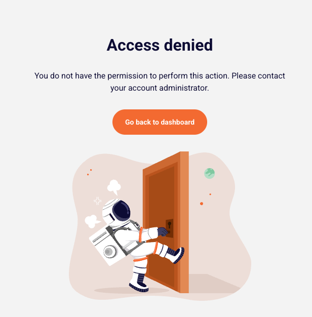 If a user attempts to access a section they don’t have permission for, they’ll see a message inviting them to contact their account administrator.