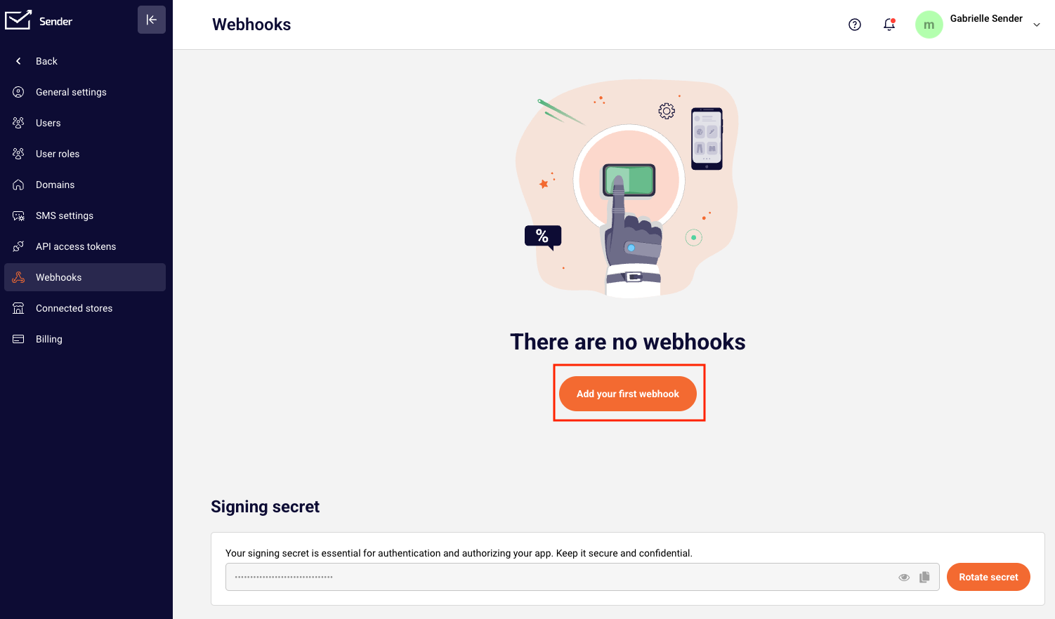 Webhooks allow you to receive real-time updates about specific events in your Sender account by sending automated messages (payloads) to a URL you provide.
