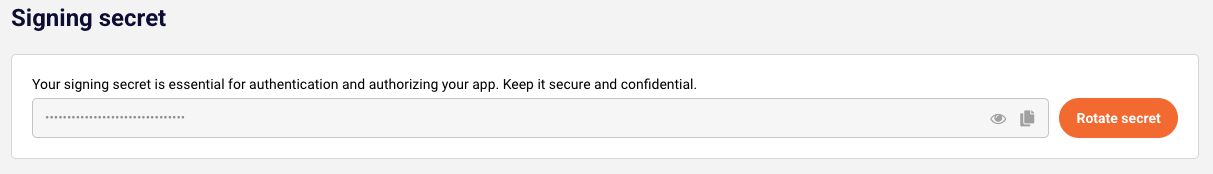 In the webhook section, you’ll also find your Signing Secret. This is used for authenticating and authorizing your app.