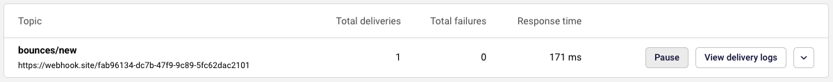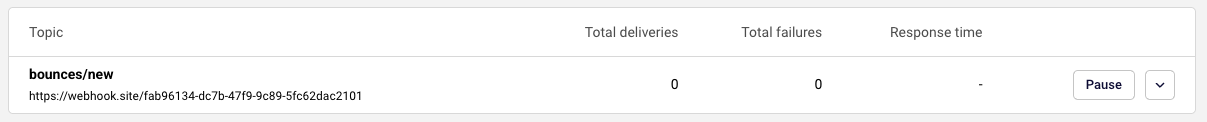 You can pause or reactivate your webhook at any time by clicking the Pause/Active button.