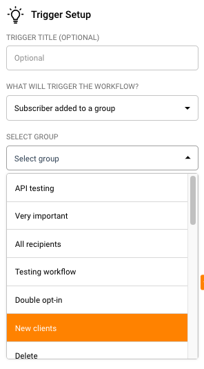 Choose the trigger. Your trigger is the event or action that will cause the automation to fire. In this case, let’s choose “Subscriber added to a group”.