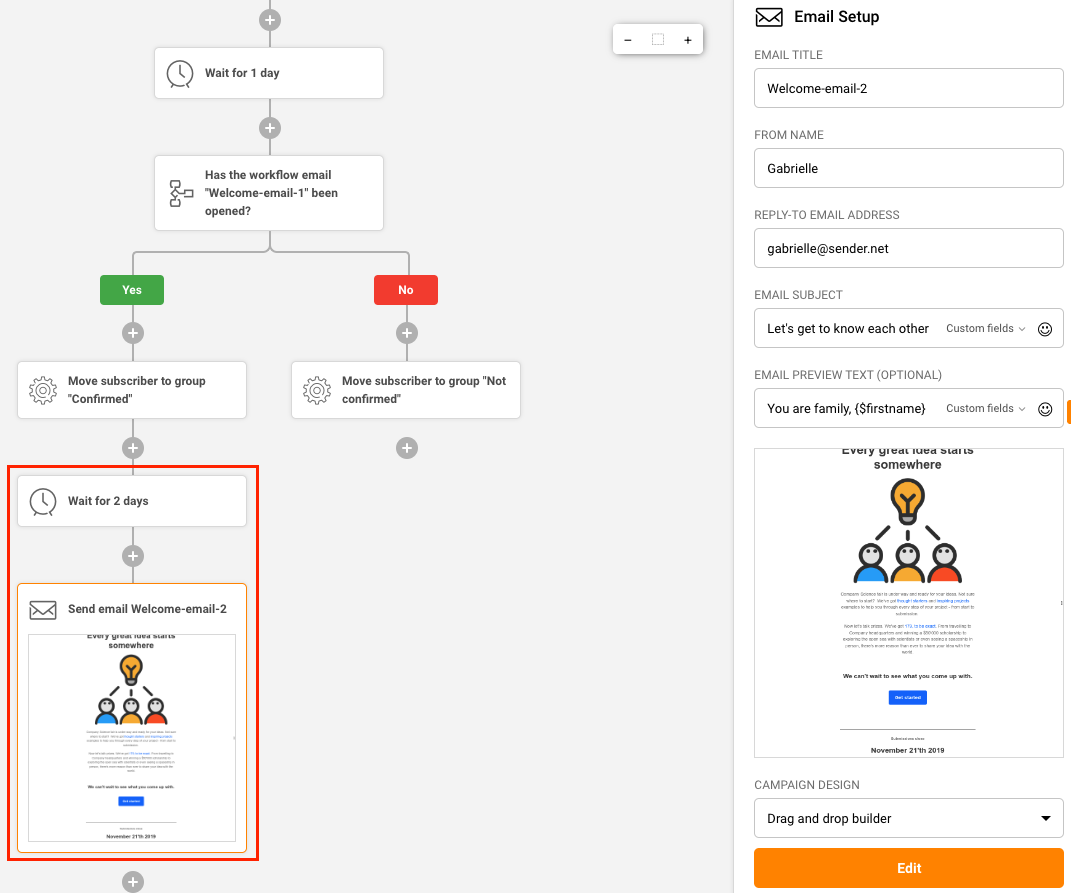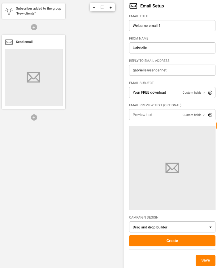 Use Sender’s step-by-step automation builder feature to build a welcome series automation in minutes.