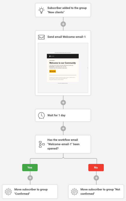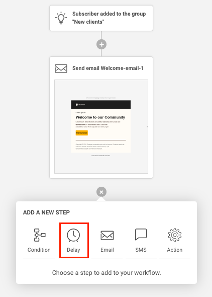 You could add another email to this welcome sequence. Maybe you want to send this email only to those subscribers who opened the first email and let’s assume you would like to do this after a delay of 2 days.