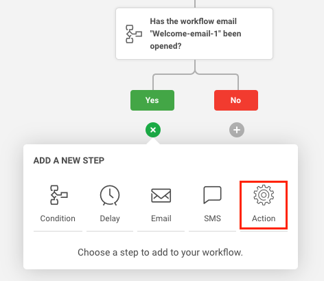Click the “+” sign below the “Yes” conditional branch and add an “Action” step.