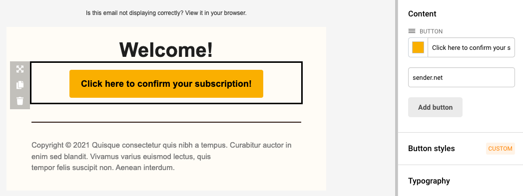 You will now need to choose the “Email” step, choose Drag&Drop builder. After you create the email, Save the changes and save the step afterwards. Make sure to add a confirmation button in the campaign that will activate the second step after being clicked. Here’s an example below: