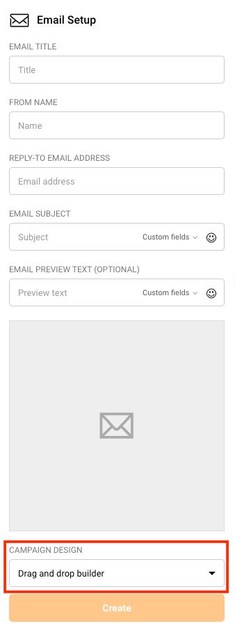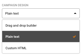 After you fill in the relevant information, for the Campaign design, from the drop-down bar choose “Plain text” and click “Create”.