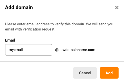Input an existing email address associated with the above entered domain name and click “Add”.
