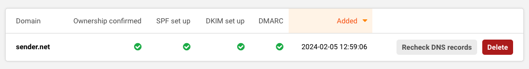 After successfully adding your domain as a valid sending domain, you can now activate DKIM, SPF, and DMARC security measures to enhance protection. Refer to the tutorial for guidance on verifying your DKIM, SPF and DMARC values.