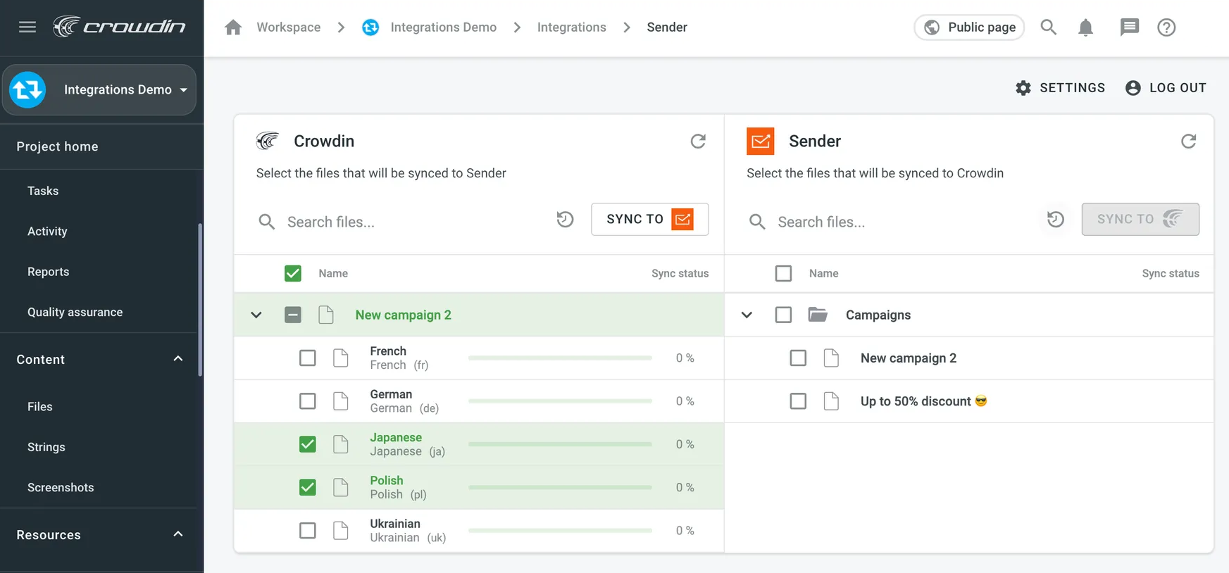 How to integrate Crowdin with Sender