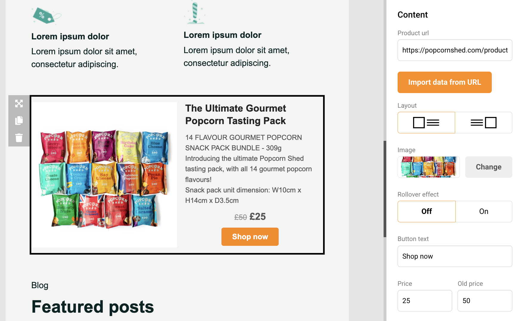 Product block is designed mainly for e-commerce clients but can be used by all users. With product block, you can easily import items from any online store. The most significant part about that – no integrations are needed.