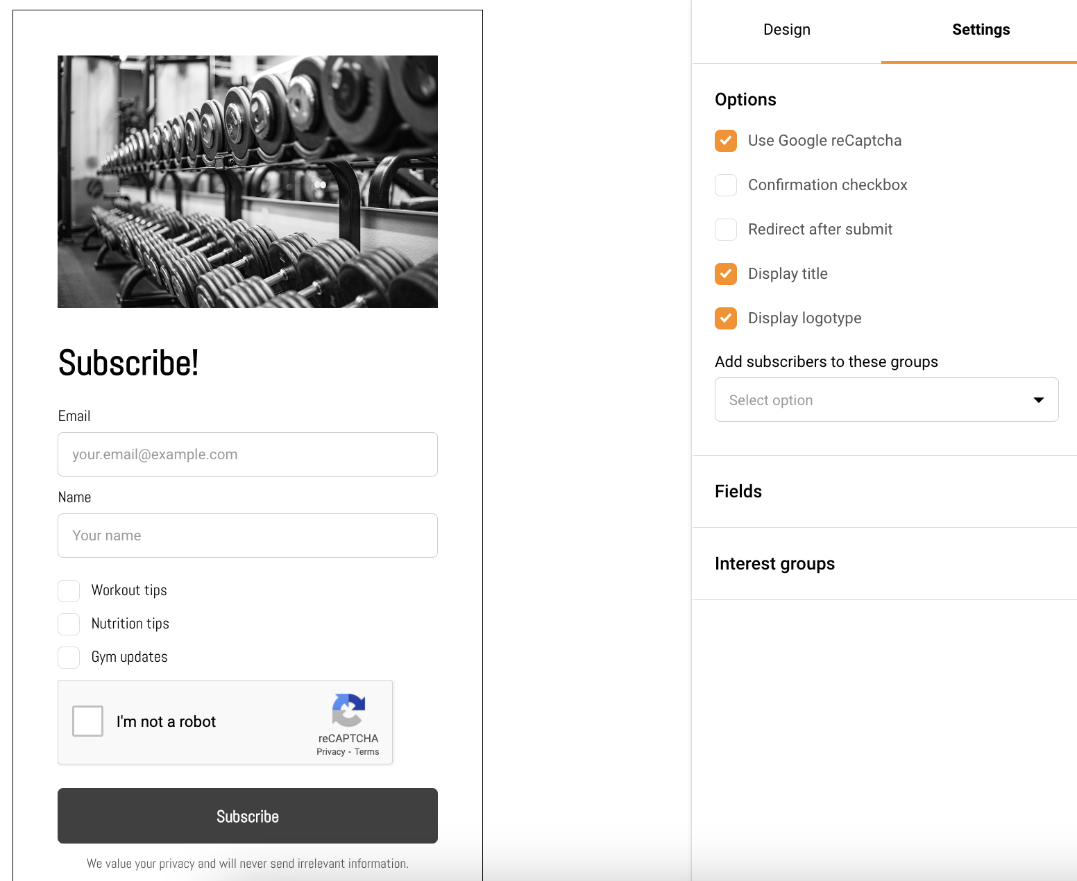 Subscription forms / Popups