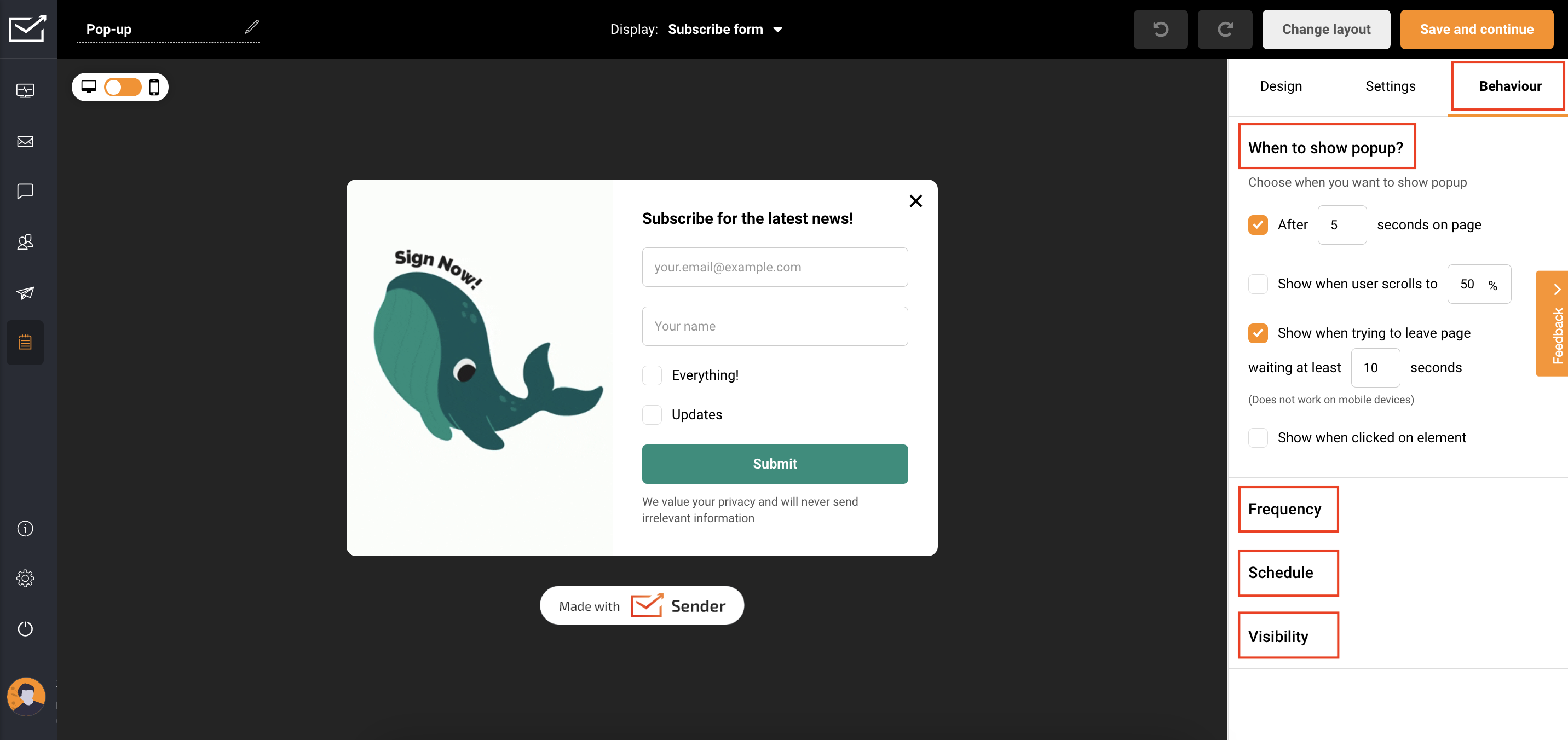 If you got stuck on a specific task or can’t find a way to execute a particular job, contact our support team via LiveChat or support@sender.net we’re here to help 24/7.
