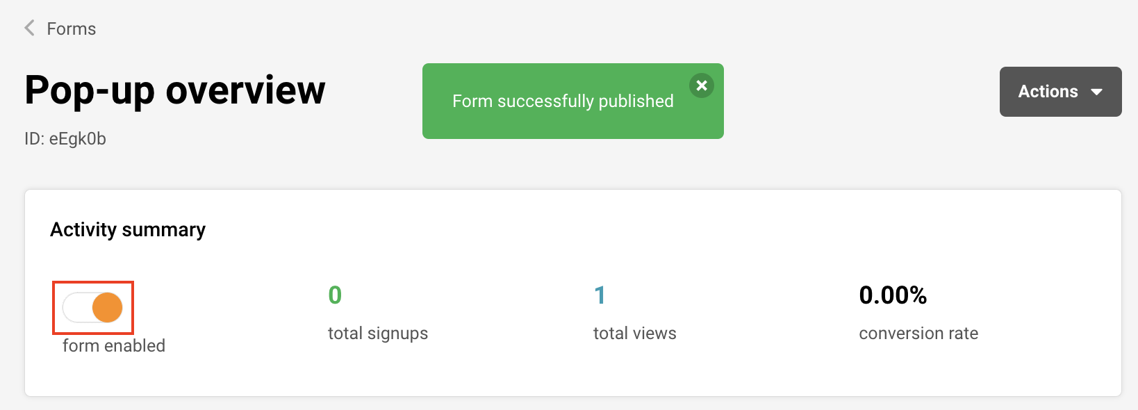 In the Overview page, under Activity summary, enable the form by switching the toggle.