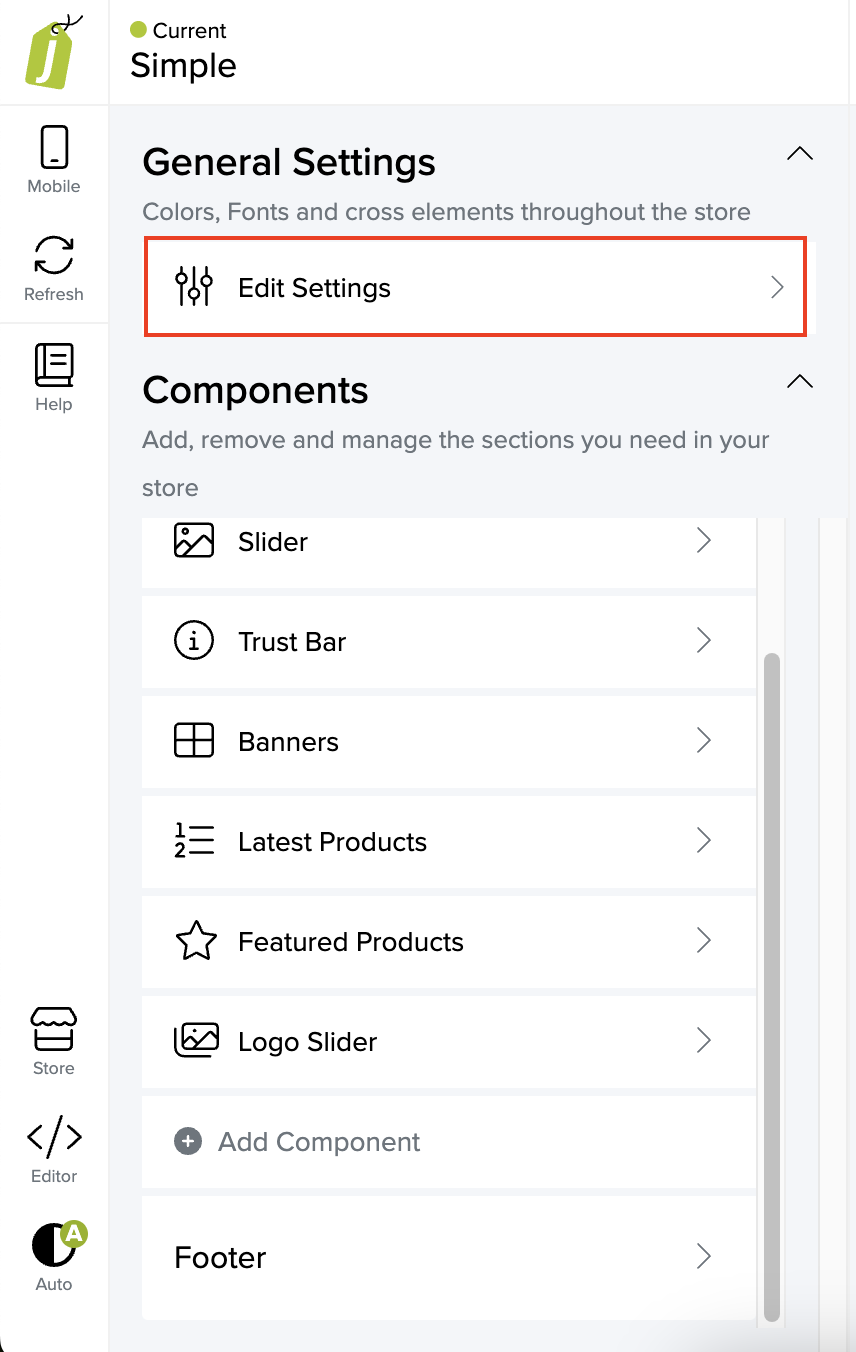 Once you have your scripts prepared, go to your Jumpseller store: Admin Panel -> Themes -> Visual Editor.