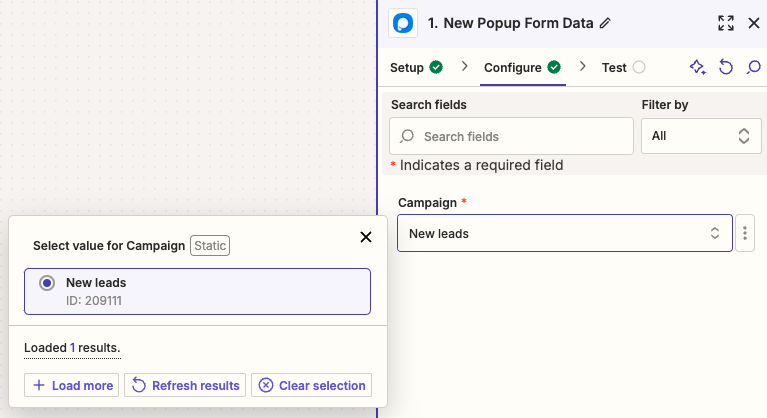 Name your Zap and for the trigger search for “Popupsmart” and choose it from the list.