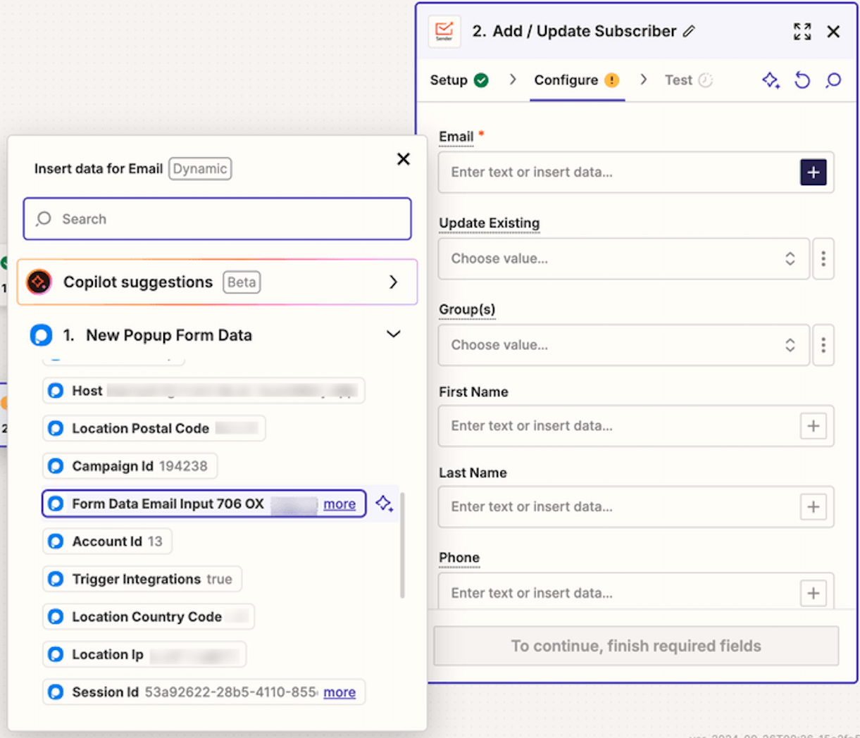 Select the group(s) where new subscribers should be added. Then, choose any additional fields you’d like to transfer to Sender along with their information.