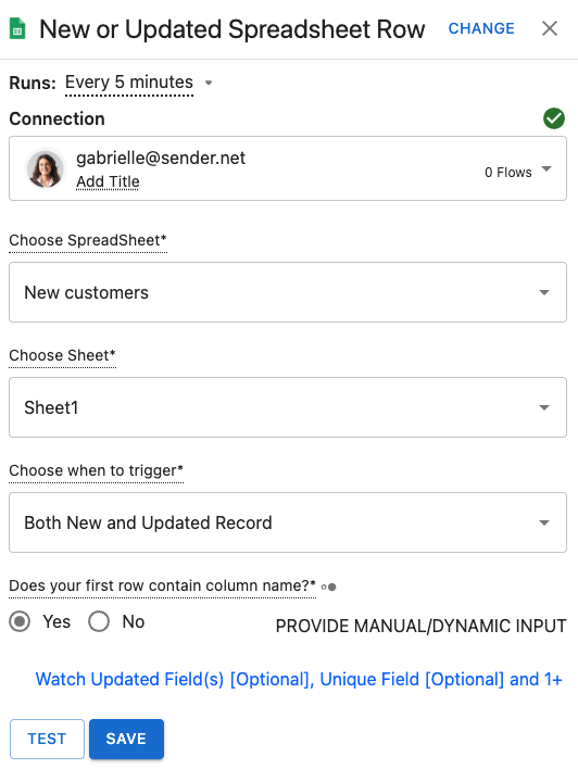 From now on, every new row added to our Google Sheet will automatically create a new subscriber in Sender.