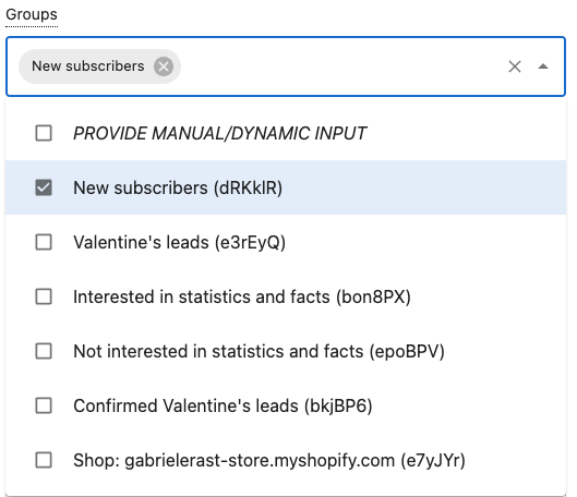 - Create and organize subscriber groups automatically based on events in connected apps.