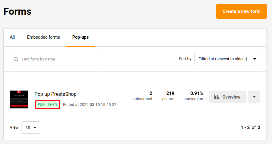Pop-up forms will automatically appear on your website without further configurations. Simply “Active” a required pop-up on Sender.net platform, and it will appear on the website.