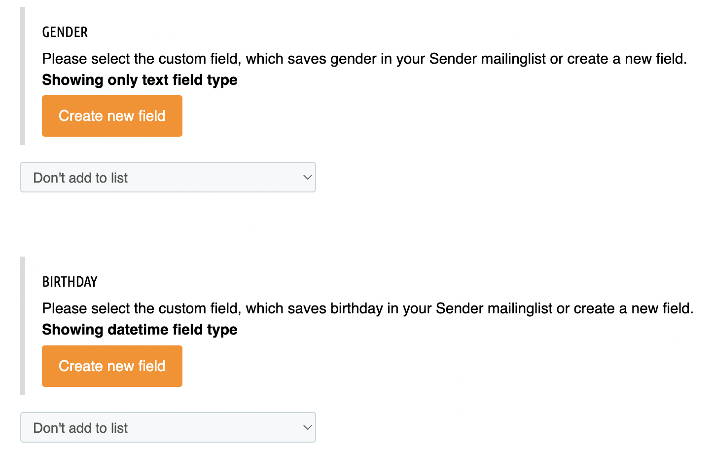 If you do not have such fields created within your Sender.net platform, you can click Create new field.