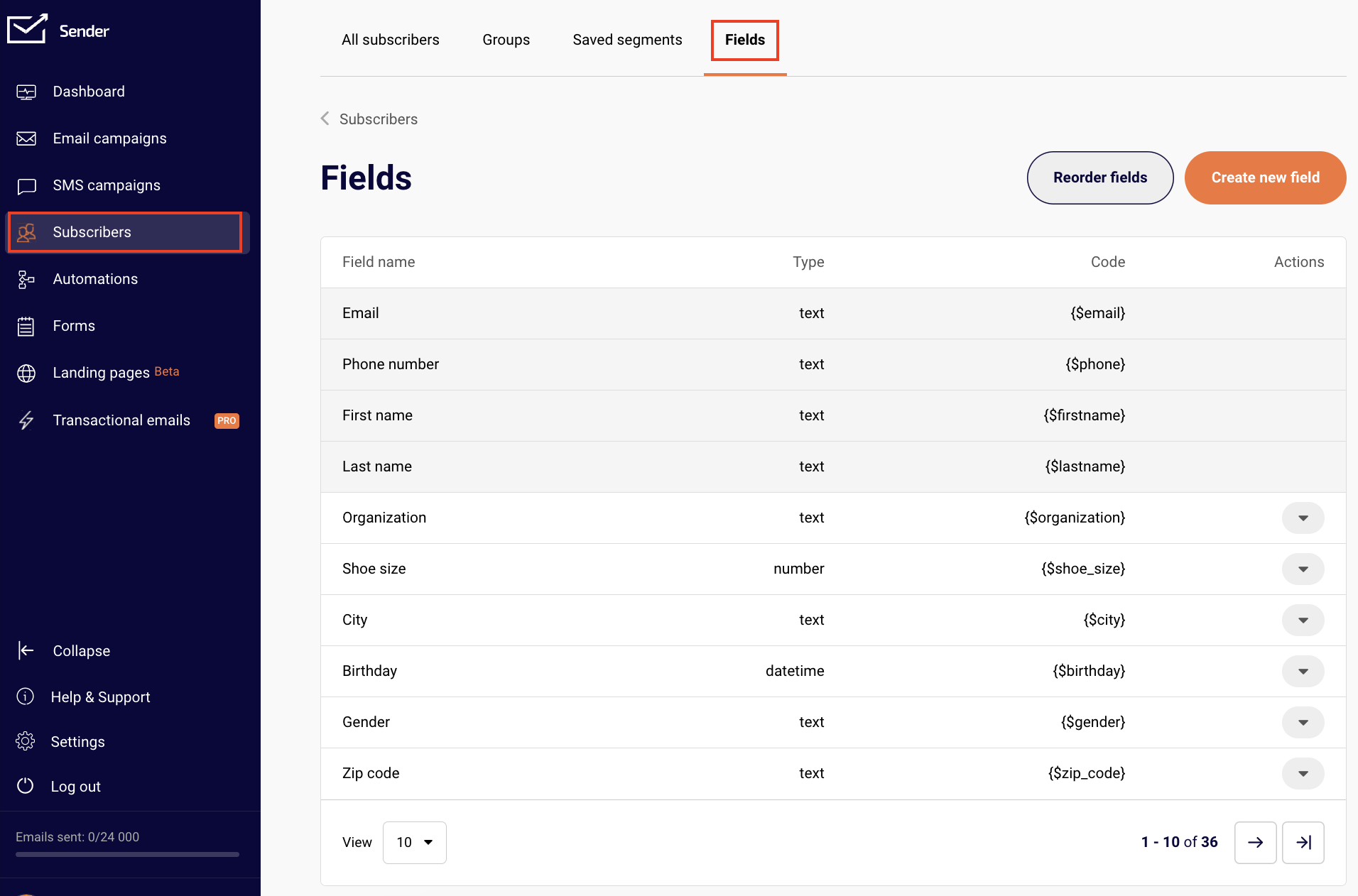 Head to “Subscribers” and select “Fields”.