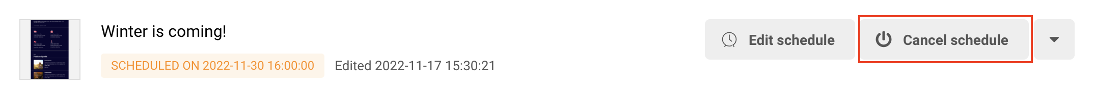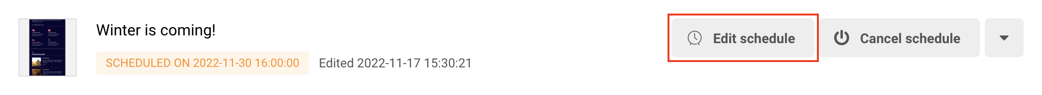 If you want to edit any other part of the campaign, e.g., its title, the preview text, the sender’s email, recipients, or content, you will have to cancel the schedule and edit the campaign as any other draft.