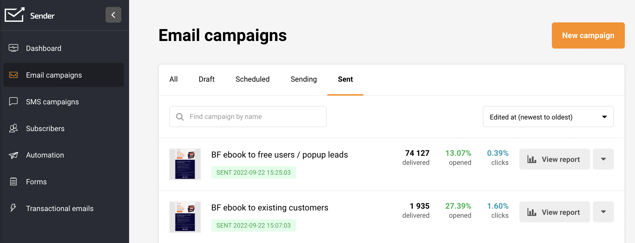 If you got stuck on a specific task or can’t find a way to execute a particular job, contact our support team via LiveChat or support@sender.net – we’re here to help 24/7.
