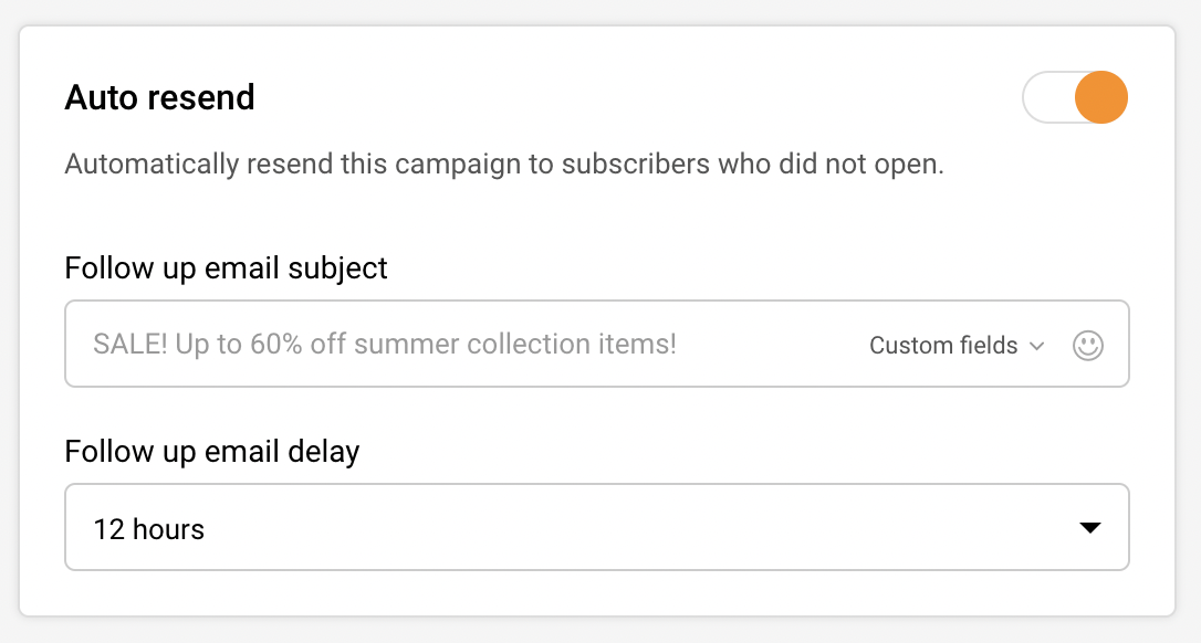 The auto-resend option is next. If you have a paid plan, you can automatically follow up with recipients who didn’t open a newsletter. Pick a delay and subject line, and continue.