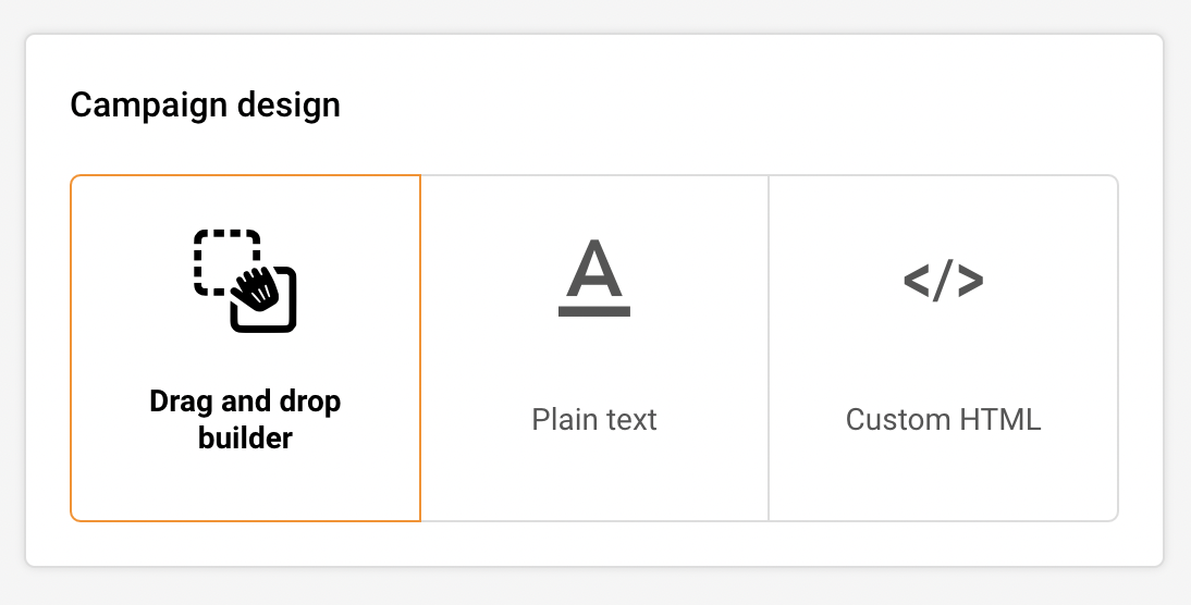- Custom HTML ( HTML coded newsletters can be imported choosing this option ).