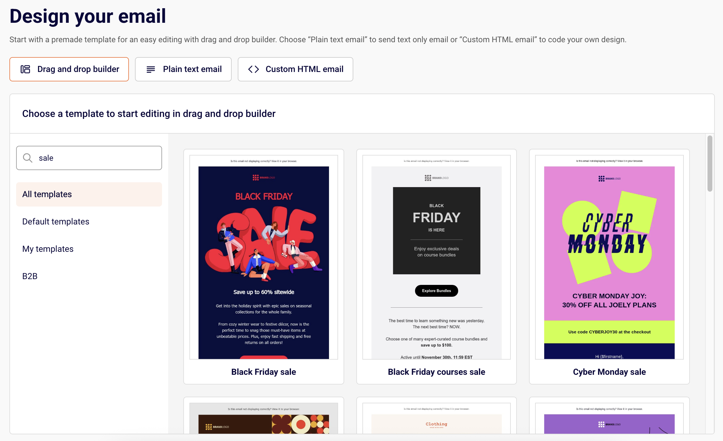 Next, set up the content for your campaign. Choose between: