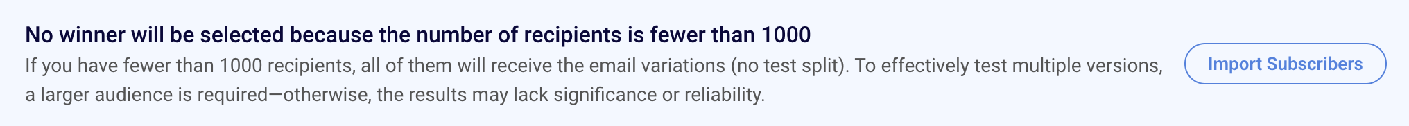 IMPORTANT: Avoid low-activity periods, like weekends or late nights, when subscribers are less likely to engage. Testing during these times could give you misleading results.