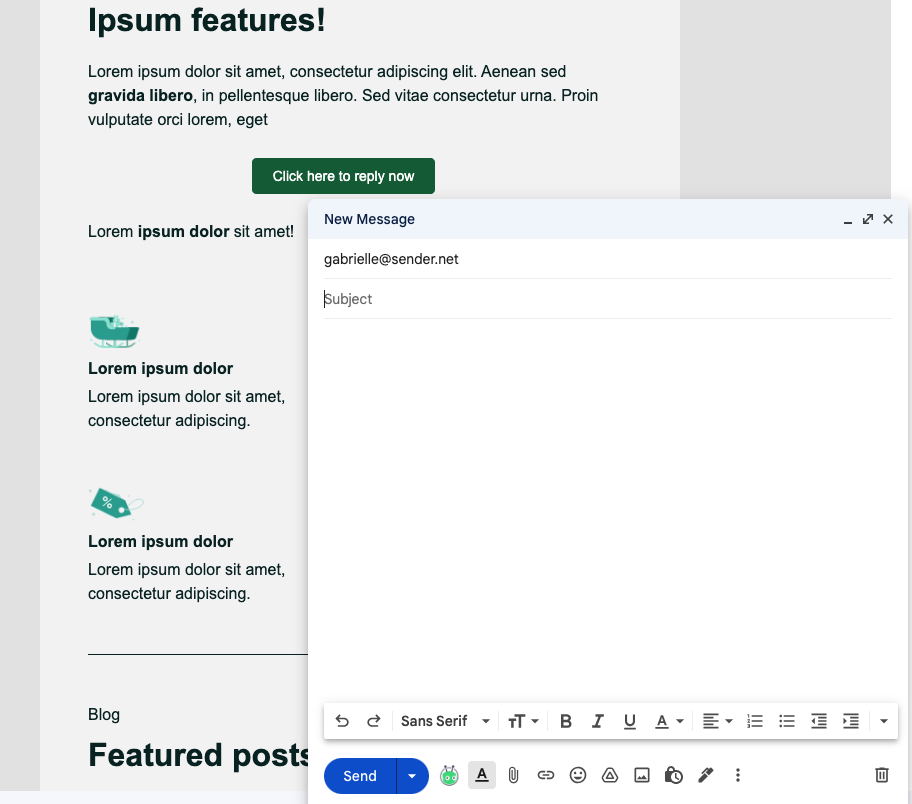 Now when the recipient clicks on the button, a draft with your email address (as the recipient) will emerge.