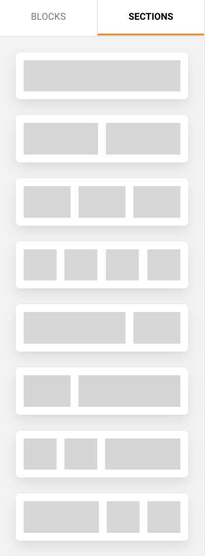 Users will initially have default sections; however, additional sections can be saved. For example – if you created an excellent-looking footer, you can save it for future use.