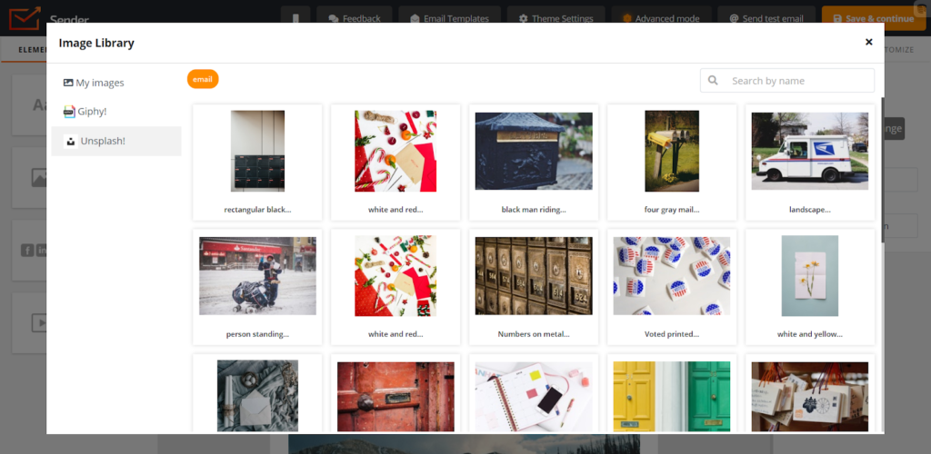 By the way, the Image Library has integrations with ‘Giphy!’ and ‘Unsplash!’, you can also get images and GIF from them: