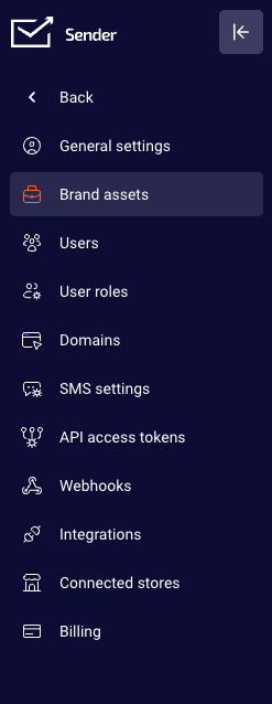 - Select “Brand assets” from the settings menu.