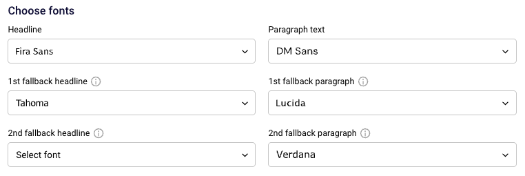 - Headline font: The primary font for your email headings (e.g., Fira Sans).