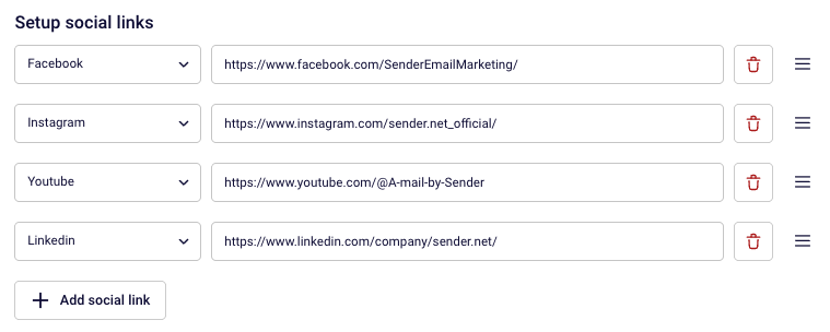 - Click “+ Add social link” button.