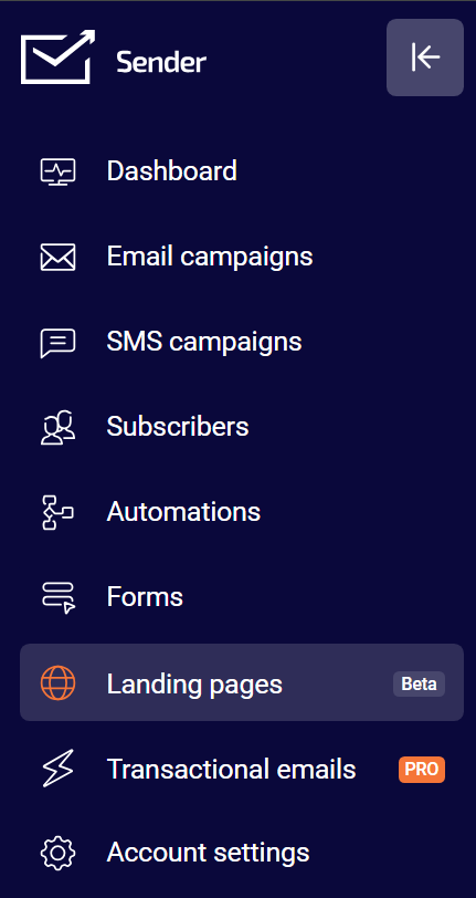 Go to Landing pages in the left sidebar