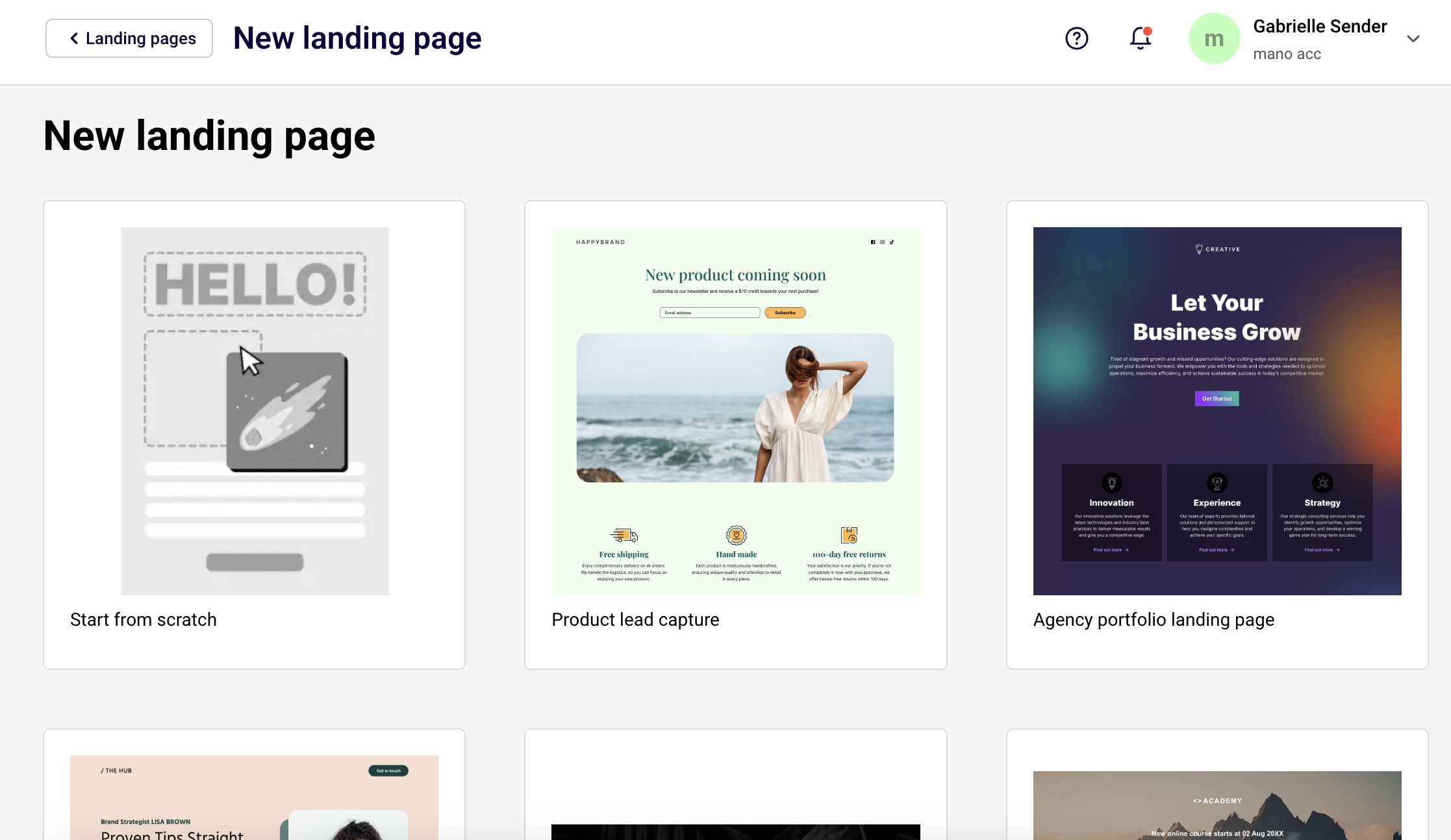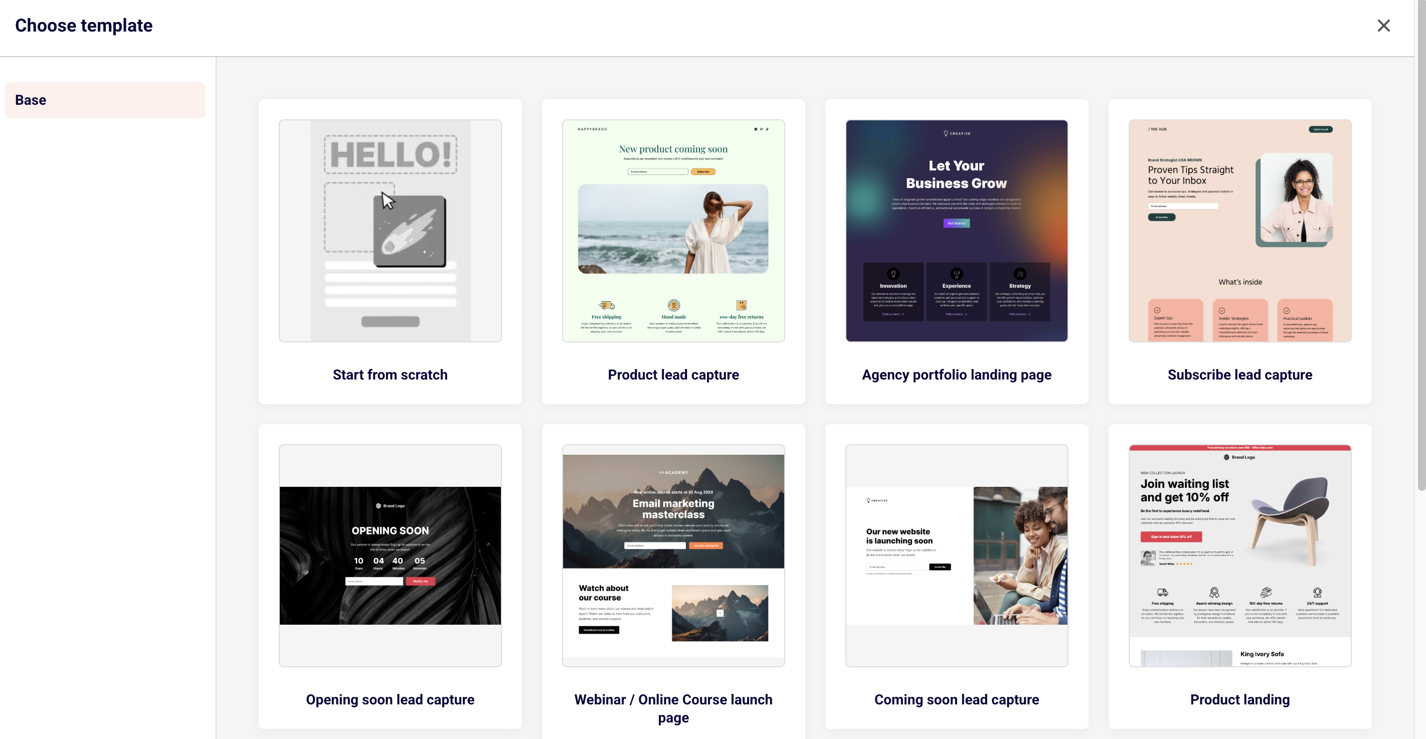 You will be asked to choose your landing page template or you can start creating one from scratch.