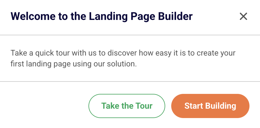 Another pop-up will give you an option to go through a quick tour around the landing page building, which we highly recommend. It will give you a great overview of the different sections and options for your creation process.