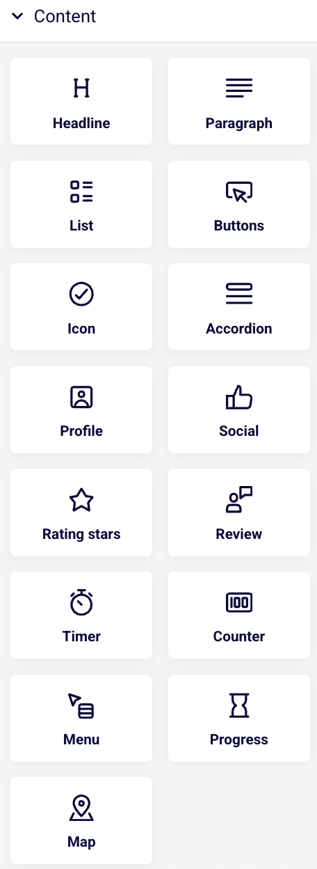 - Video – Embed videos to demonstrate products, share stories, or engage visitors dynamically.