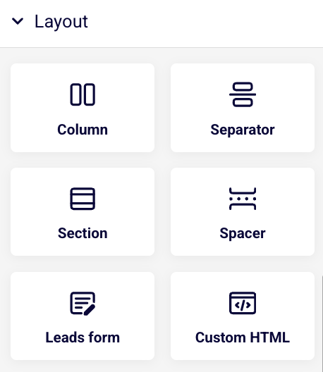 Landing page builder looks quite similar to our Drag and Drop editor made for email campaigns. It has blocks, sections and other editing tools for anything you add into your page.