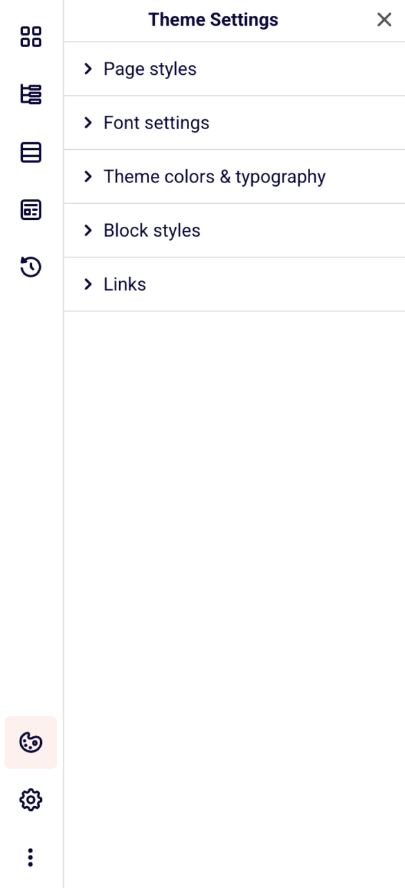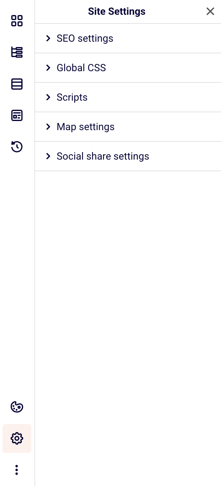 - Global CSS – Add custom styling code that applies to your entire page, allowing for advanced design customizations beyond the standard theme options,