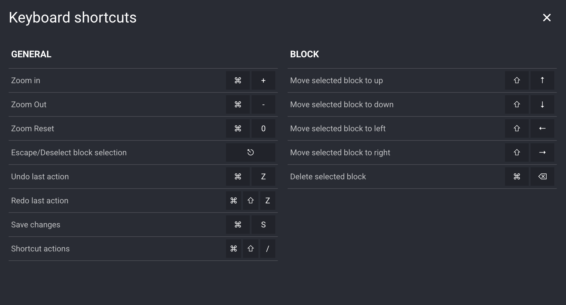 Additionally, the landing page builder includes comprehensive keyboard shortcuts to streamline your workflow and make page creation more efficient. These shortcuts allow you to build faster without constantly switching between mouse and keyboard.