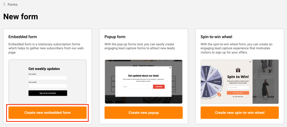 An embedded form can be made in the same way as a pop-up, with slight differences.